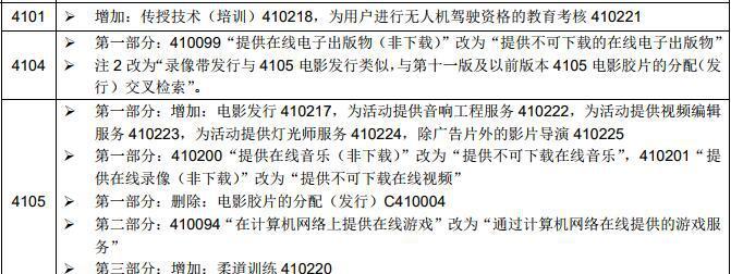 第三部分:增加:柔道训练 410220 ? 注 6 改为“电影发行与 4104 录像带发行类似”