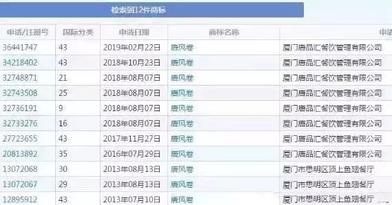 受商标风波的影响,最近,“唐风卷”改名成了“眷唐风”,老板也为此付出了惨痛的代价。但好歹老板吸取了教训,这次“眷唐风”总算提前做好了准备,把相关的餐饮类商标都注册了一个遍。